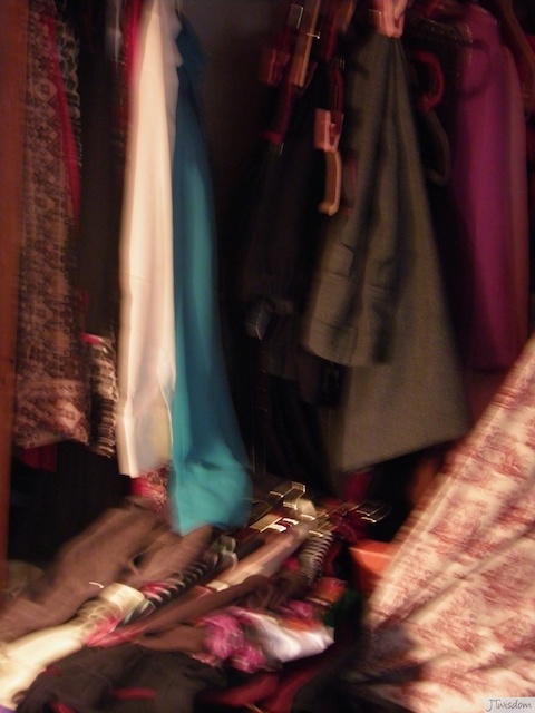 It took me a while to get all my clothes and shoes organized the way I had them because my closet space is small. The pictures came out a little blurred but you can see that my clothes are not where they are suppose to be.